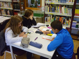 Selecionados os livros existentes na biblioteca, os alunos do 7.º ano sob a supervisão das professoras Lucilia Baptista e Isabel Catarino deram início aos trabalhos.
